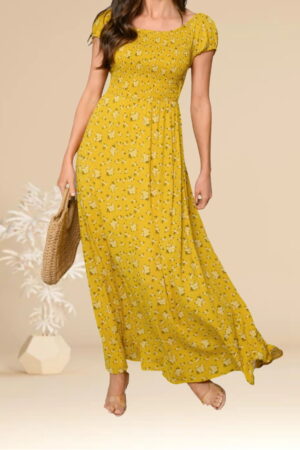 WOMEN’S SHORT SLEEVE CROSS BACK MAXI DRESS
